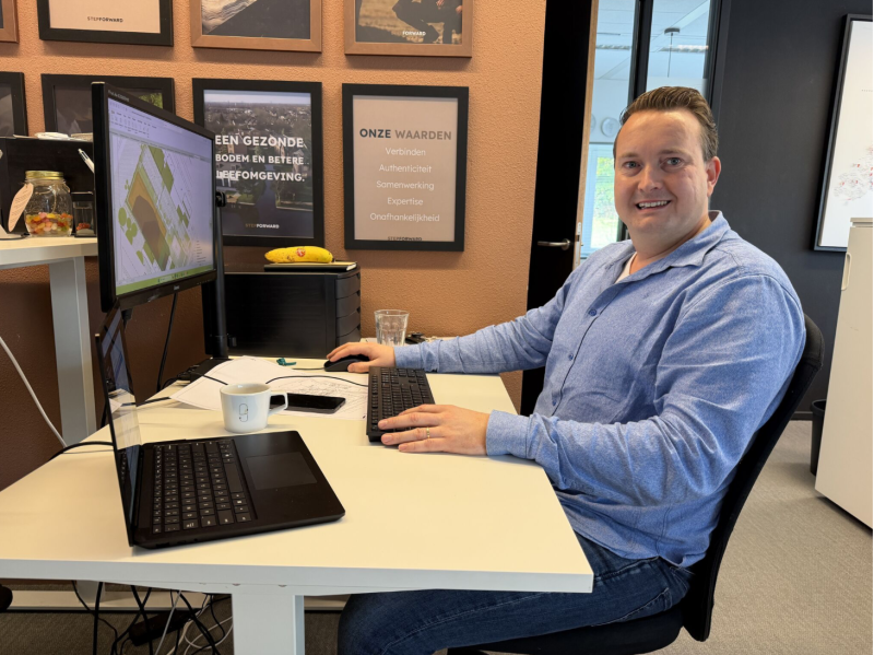Zijn achtergrond ligt in bodemonderzoek en -sanering. Strak vakgebied, helder afgebakend. Je weet wat je doet, waarom je het doet en aan het einde van het traject heb je een rapport of een bruikbare locatie. Bij Stepforward is de scope ineens veel groter. "Ik ben hier veel breder actief binnen de gebiedsontwikkeling dan alleen op bodemgebied," zegt hij. "En dat had ik eerlijk gezegd niet verwacht."